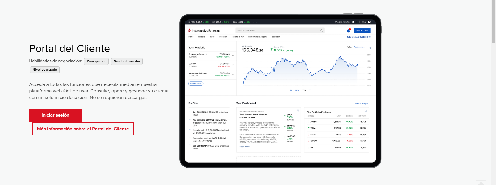 Acceso a información: El Client Portal te permite acceder a tu cuenta, realizar depósitos y retiros, y ver el estado de tus operaciones.